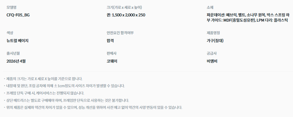CFQ-F05 BEREX 모던 플러스 파운데이션 퀸 렌탈 자가관리 3년약정 하얀색 농협카드
