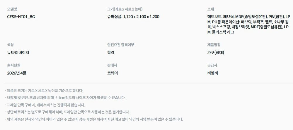 BEREX 스위트 호텔 프레임 슈퍼싱글 CFSS-HT01