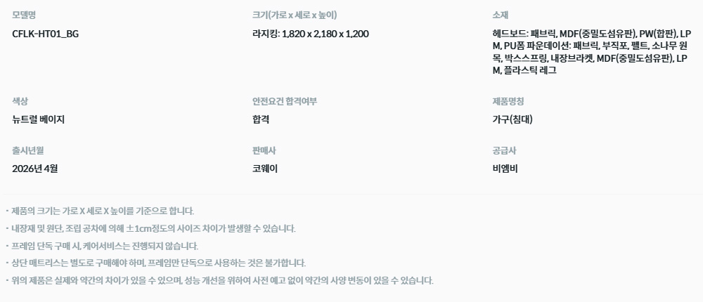 CFLK-HT01 BEREX 스위트 호텔 프레임 라지킹 렌탈 자가관리 3년약정 하얀색 농협카드
